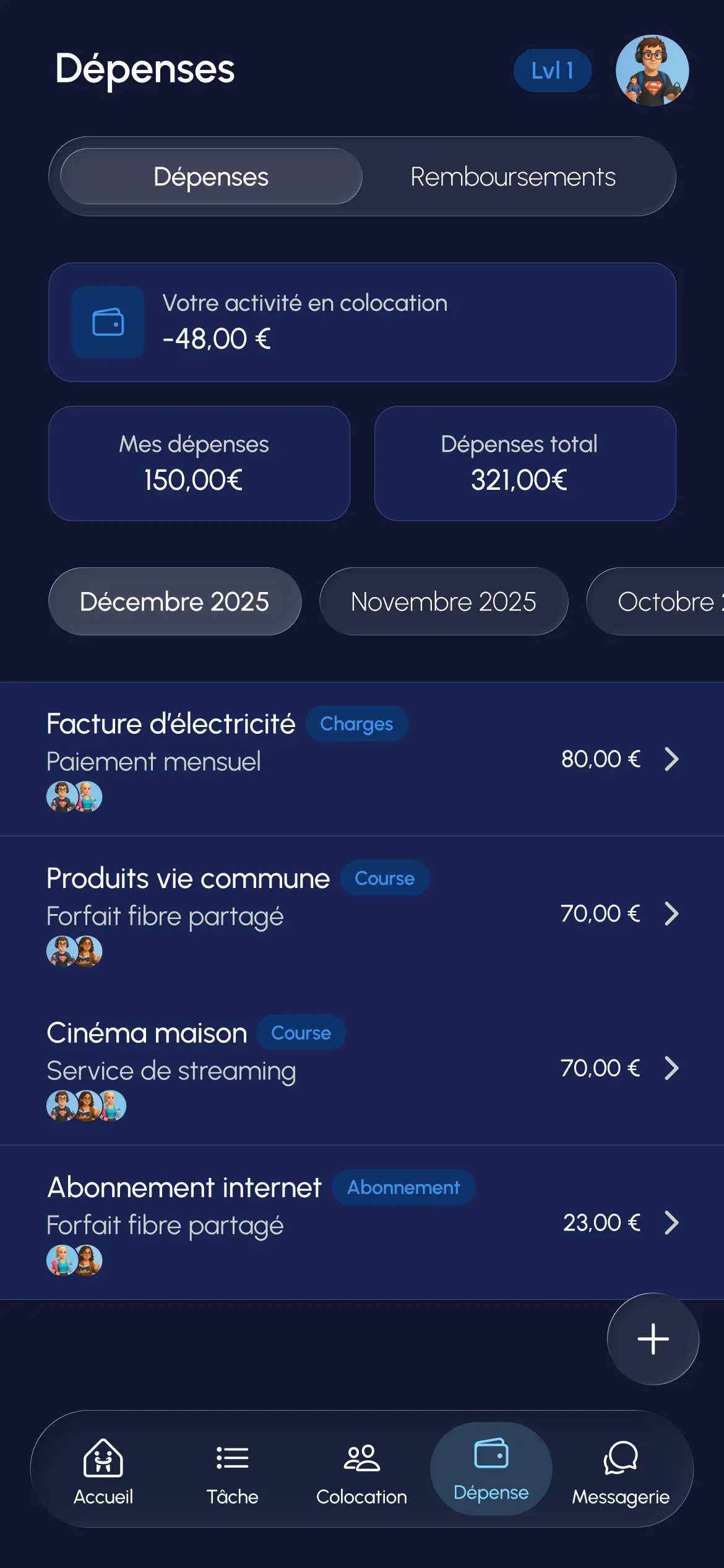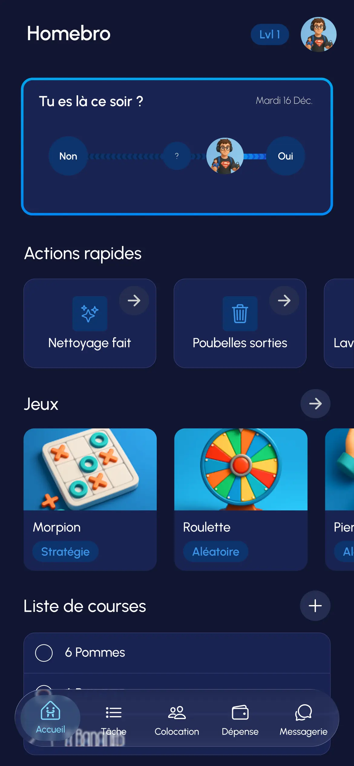 Gagnez des points, débloquez des badges et suivez l’avancement de la coloc.